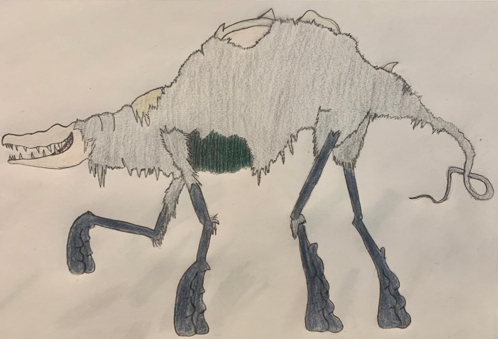 This is an image based off of the creature from Cliffside, an animated pilot about a cowboy in a world filled with monsters. Creators website with original image: https://www.liamvickers.com
